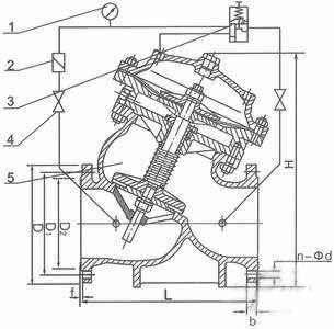 1、压力表2、过滤器3、控制导阀4、流量调节阀5、主阀
